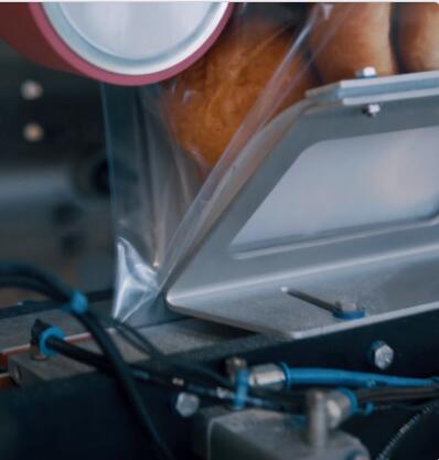 同時(shí),上一個(gè)袋子的閉合縫形成一個(gè)切口,切刀將兩個(gè)袋子分開。